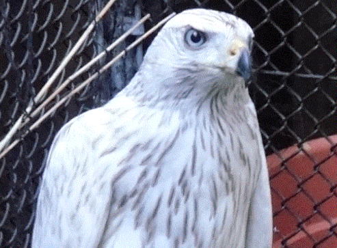 シベリアアルビダス トレーニング インプリントのシロオオタカ 止まり木で寛ぐメス 雉ハンティング |