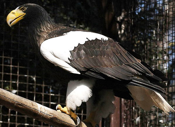 オジロワシ 付属書 T類 特定動物 世界的に保護活動が行われた結果、現在では個体数は大きく増えヨーロッパに於いては飼育下での繁殖も行われており一部が商業目的にも廻されています。 若鳥は羽全体が黒くアメリカハクトウワシの若鳥と良く似ています。 トレーニング 若鳥のデモトレーニング 成鳥のデモトレーニング オジロワシのフィッシュハンティング |